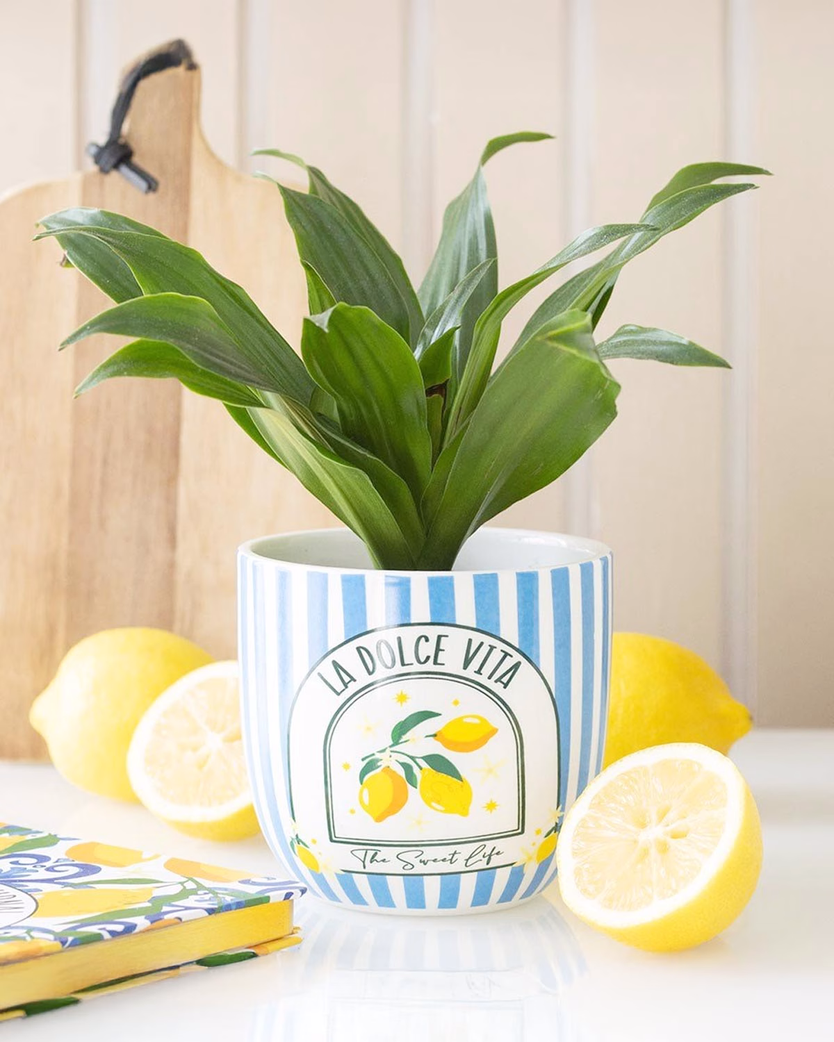 Our Oil Can Vases are ceramic, hand-painted to look like vintage olive oil and lemon juice tins, and available in four designs — blush pink, warm orange, soft cream, and lemon yellow. Pop in some dried stems, a sprig of rosemary, or a handful of wildflowers and suddenly your bench looks like a Sicilian market stall.