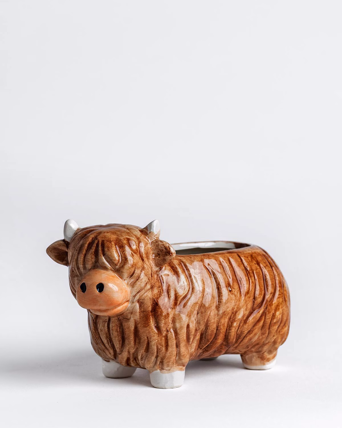 Add a touch of rustic charm to your space with our Highland Cow Planter. Featuring a delightful design inspired by the iconic Highland cow, this adorable ceramic planter is perfect for housing your favourite plants or succulents. Crafted with attention to detail, it’s a playful yet stylish addition to any home or garden décor.