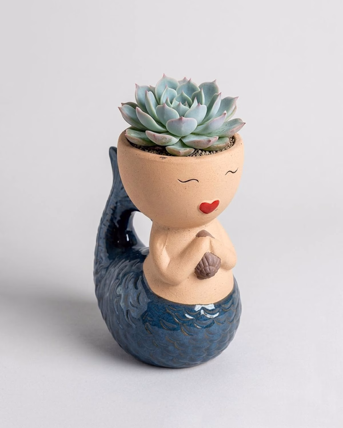 She’s not thinking about your to-do list and honestly, good for her. This ceramic Mermaid Planter sits in total bliss — eyes closed, red heart lips, clutching her little shell — while a succulent blooms from the top of her head like the world’s most fabulous hair. Her deep blue glazed tail curls behind her in gorgeous scalloped detail. She’s part planter, part meditation inspo, and entirely the most enchanting thing on any shelf she touches.