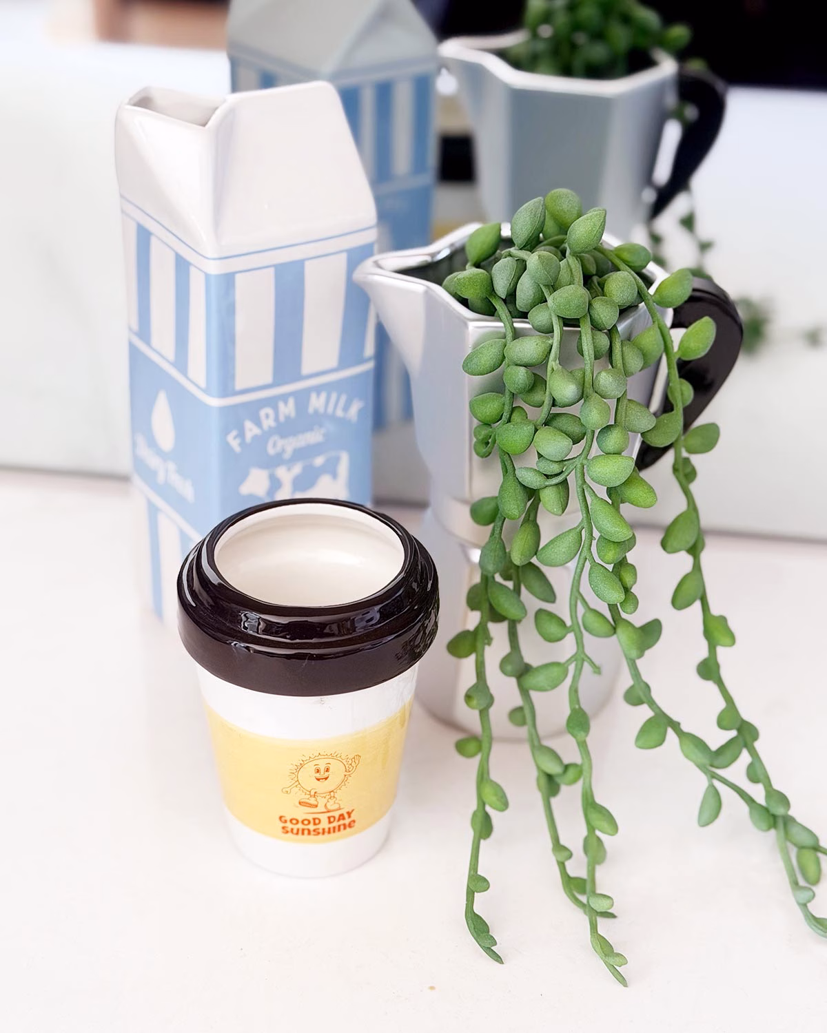 Shaped like a classic farm-fresh milk carton (but significantly less perishable), this playful ceramic vase brings a splash of nostalgia to your kitchen, dining table or coffee nook. Fill it with fresh blooms, dried stems or leave it empty as a statement piece that says, “Yes, I take my interior styling with a side of humour.”